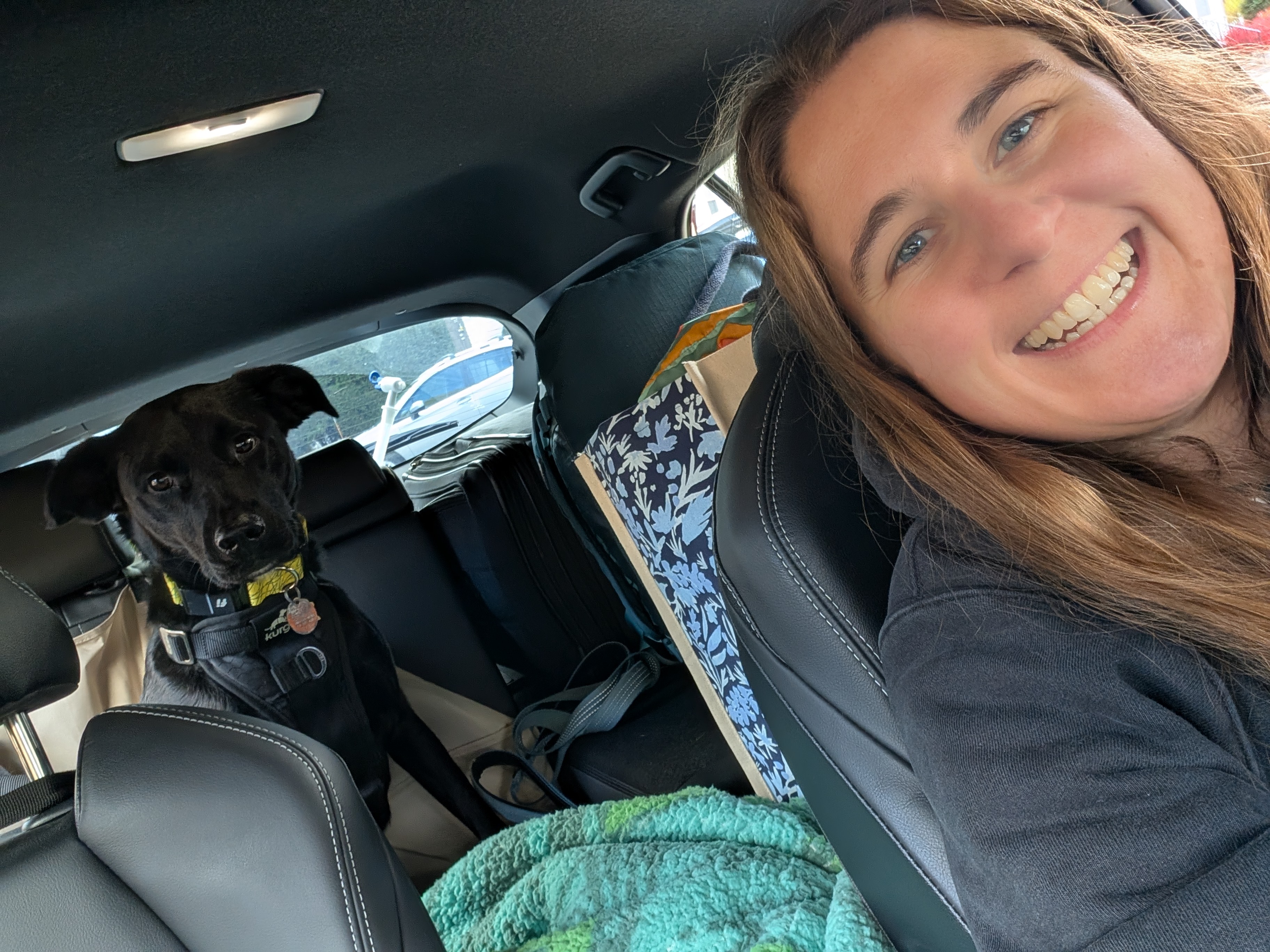 Original intention for today was to make it to Little Devil’s Stairs hike in Shenandoah, but I did some sunset back-calculating math and realized we’d have to leave by like 9 am to make it reasonable. So we pivoted and went to a winery ten min from the Airbnb, and then to a brewery (with just fine pizza) 10 min away from that. Who would’ve ever thought I’d have a brewery dog. Not me, I’m so happy.